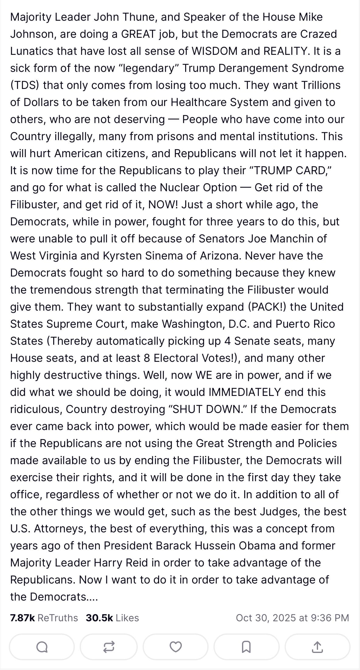 Here was his post to TruthSocial: